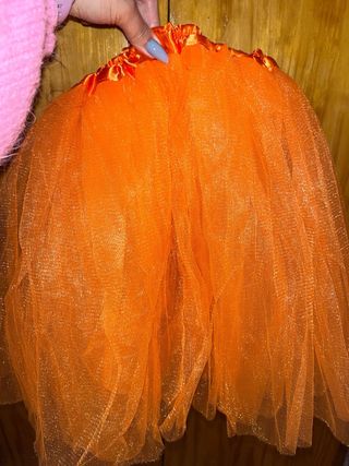 Tutu cor de laranja. É de criança, mas não tem tamanho. Para mais medidas, mande mensagem.