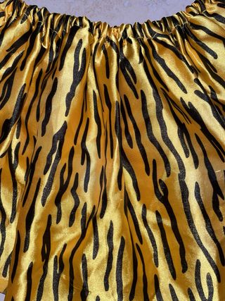 Tutu amarelo com riscas pretas. É de criança, mas nao tem tamanho. Para mais informações acerca do tamanho, mande mensagem.