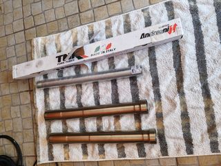 Conjunto de tubos de garfo dianteiro para Ducati 996. Estão incluídos dois tubos de garfo em excelente estado e um kit de tubos de garfo da marca TK. - Feitos na Itália. - Inclui 2 tubos de garfo e 1 kit de tubos. - Ótimo estado.