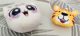 Muy lindos llaveros de peluche, ideales para regalar o coleccionar Son muy suaves y esponjosos, puedes estrujarlos y vuelven a su forma original enseguida El llavero de tigre amarillo es más duro y tiene un imán por dentro en la parte de atrás lo cuál te permite colocarlo en más sitios Puedo verderlos por separado a 6€ cada uno, pregunta por lotes con el resto de cosas que tengo porque hago descuento