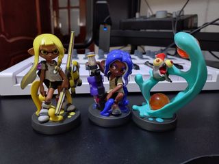 Amiibos de Splatoon 3 con la Inkling amarilla el Octoling azul y el Cenutrín el salmón bebé Idealmente te llevas los 3 pero podría venderlos por separado también a 10€ cada uno Sin la caja pero prácticamente como nuevos se estregan bien protegidos Ya están formateados y listos para usar Hago descuento con lote de otros productos de mi perfil solo pregunta ------ Nintendo Amiibo Amiibos Splatoon Figuras Figura