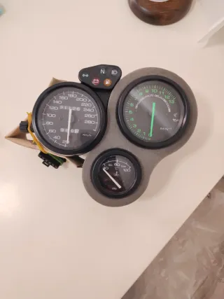 Quadro de instrumentos para Ducati 916, 996 e 998. Peça em excelente estado. - Velocímetro com escala até 280 Km/h. - Tacômetro com escala até 13.000 RPM. - Indicador de temperatura. - Luzes indicadoras (N, setas, bateria, óleo).