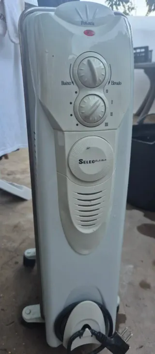 Aquecedor elétrico em bom estado, ideal para aquecer ambientes. - Design moderno em tons de cinza e branco. - Rodas para fácil locomoção. - Controles de temperatura e potência. Escucho ofertas.