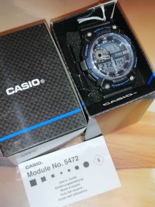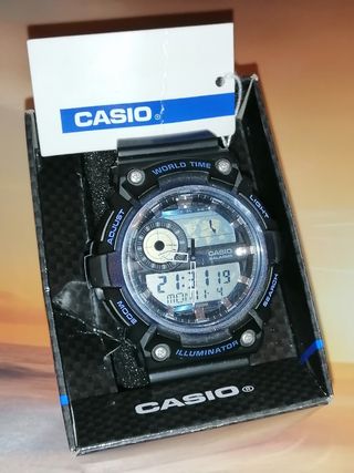 Estupendo relógio dual analógico e digital da prestigiada marca CASIO. Mod. AEQ-200W-2AVER. 🆕🏷️ Novo a estrear. + 🕙🕚 Mapa mundo com 24 capitais com vários fusos horários. + Time-horas minutos e segundos. + 📅 Data com dia semana e mês. + 💡 Luz LED. + ⏱️ Cronômetro. + ⌛ Contador regressivo. + 💦 Estanquecidade 100m. + 🔔 Sinal horário. + ⏰ 5 Alarmes despertador. + Caixa redonda negra com 4 botões, 📏50,8x15,9mm. + Bracelete negra 📏28x(2a2,7cm). ℹ️ Com caixa e documentos, preço na loja oficial 59€. CV300.2/5+.