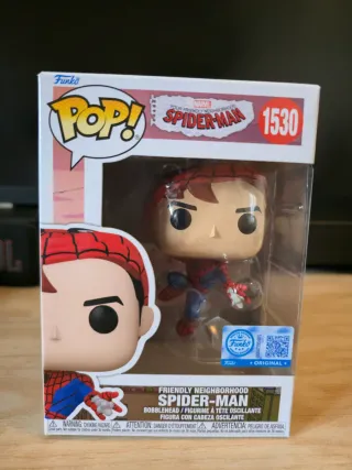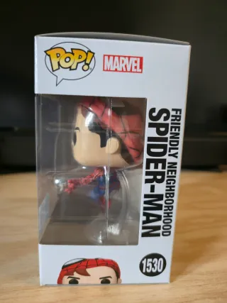 Figura Funko Pop do Homem-Aranha, número 1530. - Personagem: Friendly Neighborhood Spider-Man. - Tipo: Bobblehead / Boneco com cabeça de mola. - Coleção: Marvel. - Selo de originalidade Funko.