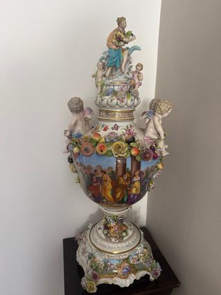 Magnífica anfora ornamental em porcelana, com detalhes elaborados. - Peça de grande porte. - Rica em ornamentação floral e figuras. - Acabamento em porcelana de alta qualidade. peça era de herança familiar veio da Itália mas não sei a procedência.