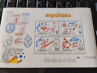 Conjunto de selos comemorativos do Mundial de Futebol Espanha 1982. Estes selos mostram imagens icónicas do evento. - Inclui quatro selos com diferentes valores. - Apresentam-se em bom estado de conservação. - Ideal para colecionadores.