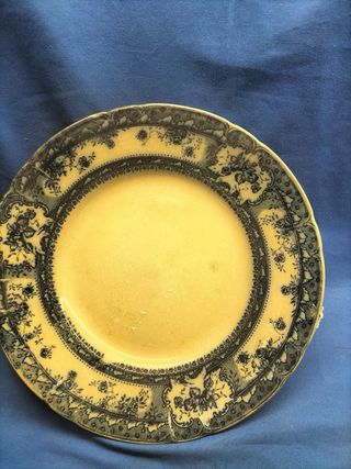 Prato em faiança com um bonito padrão em relevo. Prato em faiança, vidrada, decoração em relevo, Les Fruits Colletion, Design by Suzanne Nicoll, fabricado em Portugal, como novo, nunca usado, mede 25cm de diametro. - Material: Faiança vidrada. - Decoração: Padrão em relevo de folhas e bagas. A5