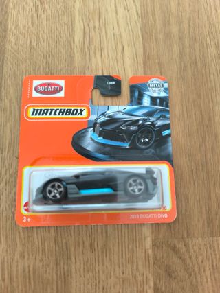 Miniatura do Bugatti Divo de 2018 da Matchbox. Modelo em escala. - Carroceria em metal. - Detalhes em azul.