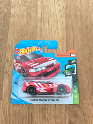 Miniatura Hot Wheels Custom '01 Acura Integra GSR. Parte da coleção Speed Blur. - Escala 1/64. - Cor vermelha com detalhes gráficos. - Embalagem original.