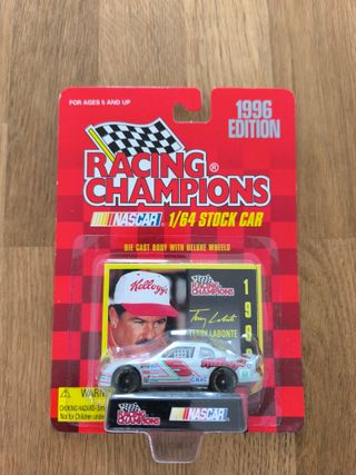 Carrinho de corrida em escala 1/64 da série Racing Champions, edição de 1996, apresentando o piloto Terry LaBonte e o número 5. - Carroceria em metal fundido com rodas de luxo. - Detalhes do patrocinador Kellogg's. - Inclui a embalagem original.
