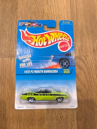 Miniatura Hot Wheels do Plymouth Barracuda de 1970, modelo Collector #523. Um clássico muscle car. - Carroceria em metal die-cast e peças plásticas. - Design muscle car styling. - Garantia Hot Wheels for Life.