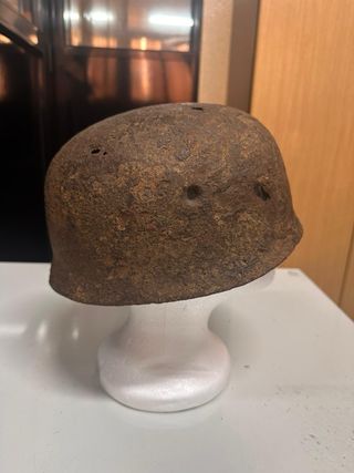 Capacete M38 da Luftwaffe - Raridade Histórica da Batalha de Cassino Autêntico e extremamente raro, este capacete M38 da Luftwaffe é uma peça única, com grande valor histórico. Este exemplar esteve presente na Batalha de Cassino, uma das mais intensas e sangrentas da Segunda Guerra Mundial. A peça acompanha certificado de autenticidade emitido por um museu em Itália, onde esteve exposta após ter sido encontrada no local histórico. Uma oportunidade exclusiva para colecionadores e apaixonados por história militar. Interessados, entrem em contacto por mensagem