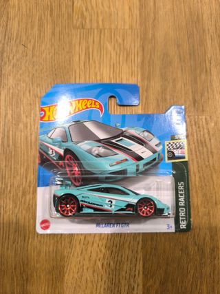 Miniatura do icónico McLaren F1 GTR da coleção Retro Racers da Hot Wheels. - Carro em miniatura. - Design inspirado no McLaren F1 GTR. - Parte da série Retro Racers.