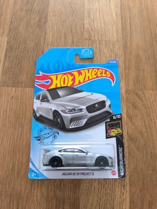 Miniatura do Hot Wheels Jaguar XE SV Project 8. Blister um pouco descolado - Modelo: Jaguar XE SV Project 8 - Série: Nightburnerz - Número na coleção: 6/10 - Número do modelo: 171/250
