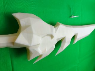 Arma do jogo Metin2. Avisos: ~ - Esta NÃO é uma arma real, é para cosplay ou para exibição. - Esta é uma recriação feita por um fã das armas originais do jogo, alguns detalhes não estão presentes no jogo. Feita com Blender e Fusion 360. É impressa em branco, o que facilita a pintura. O produto virá em 8 peças e 10 meias argolas que precisarão ser coladas para formar o produto final. Não precisa de instruções, é super simples de montar. Vem com filamento extra do mesmo carretel, caso você queira usar uma caneta 3D para preencher buracos ou fazer alterações. É impressa em PLA com bicos de 0,2 e 0,4 mm e 20% de preenchimento. O que