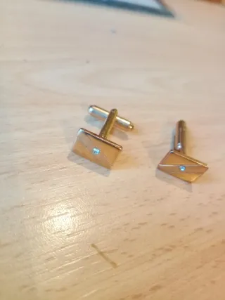 Par de botões de punho dourados com pedra