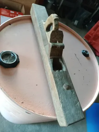 Plaina antiga em madeira, necessita de tratamento. A asa precisa de tratamento para o caruncho o restante está intacto apenas precisa de limpeza adequada. - Ferramenta de carpintaria. - Material: Madeira.
