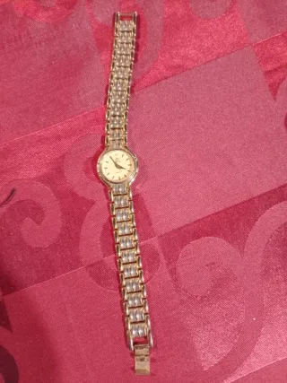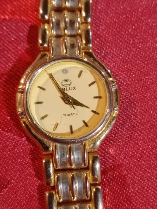 Relógio de pulso da marca Ablux. Ideal para quem restaure ou colecione não sei se trabalha falta a pilha e a coroa. - Mecanismo ETA. - Mostrador com ponteiros. - Detalhe de um pequeno diamante no mostrador. - Pulseira em metal dourado e prateado.