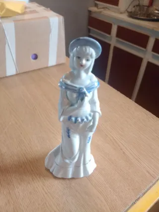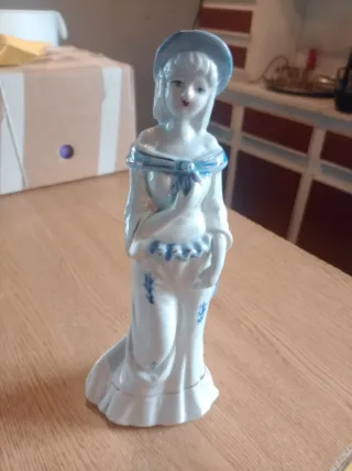 Boneca de porcelana azul e branca