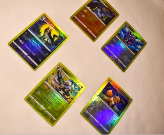 Coleção de cartas Pokémon. - Inclui cartas como Raichu GX, Entei GX, Mewtwo GX e Shining Rayquaza. - Algumas cartas possuem arte especial. - Ideal para colecionadores e jogadores.