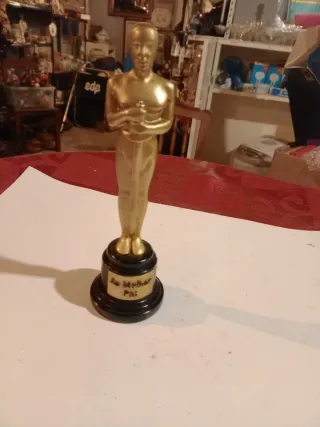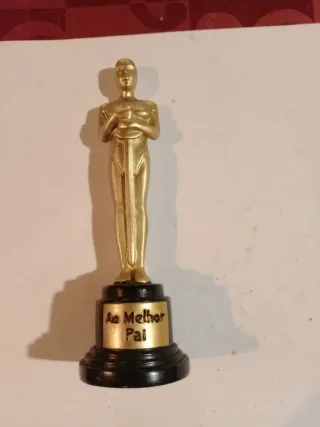 Estatueta dourada com base preta. - Design inspirado em estatuetas de premiação. - Base com inscrição Ao Melhor Pai.