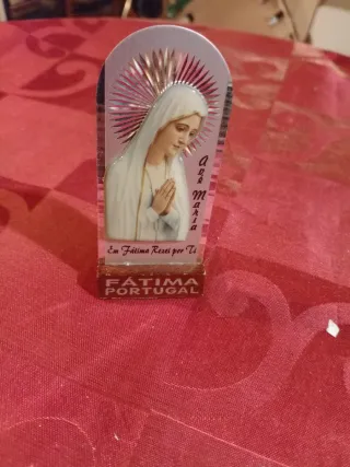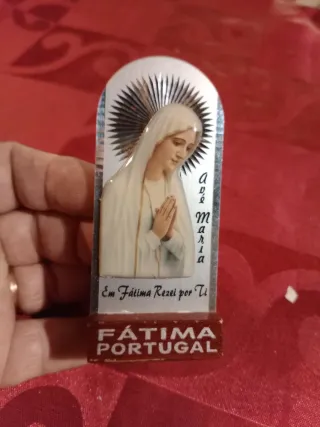 Imagem de Nossa Senhora de Fátima com a inscrição Ave Maria. - Em Fátima Rezei por Ti - Base com FÁTIMA PORTUGAL