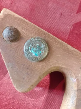 Serrote antigo, ideal para colecionadores. Feito na Ramada Portugal. - Lâmina de serra com dentes finos. - Cabo em madeira. - Detalhes em metal no cabo.