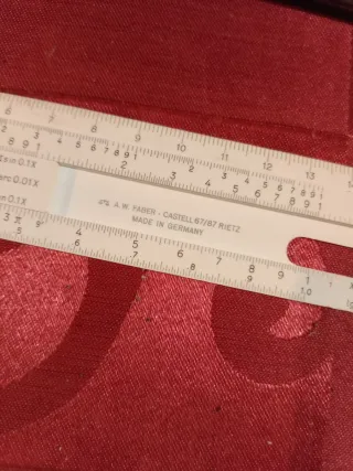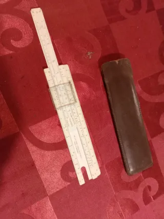 Régua de cálculo antiga com bolsa