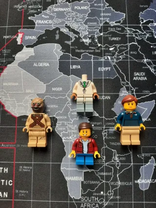 Conjunto de figuras Lego. - Pergunte pelo preço de cada um - Figura con traje de doctor. - Figura con traje marrón y máscara. - Figura con chaqueta roja y camisa azul. - Figura con chaqueta azul y camisa blanca.