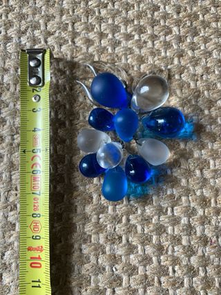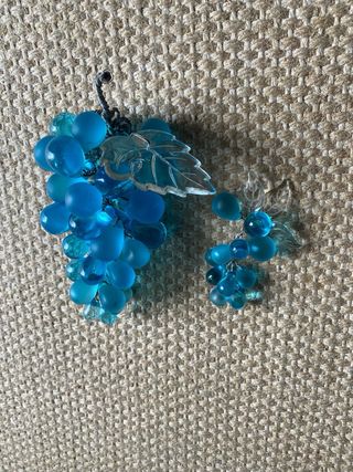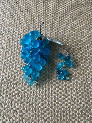 Conjunto de cachos de uvas decorativos em vidro, com um design que remete aos anos 60. Cada cacho é composto por uvas em diferentes tons e acabamentos, algumas translúcidas e outras foscas, unidas por um arame fino e com detalhes de folhas em vidro transparente. - Material: Vidro - Estilo: Vintage Anos 60 - Detalhes: Folhas em vidro transparente - Tons de azuis - Tons de cinzento - Tons de ocre Cacho pequeno = 20€ Tenho de editar valor consoante o que escolher Nao sei se é vidro Murano!? Estado impecável,como novo,veja fotografias por favor Tenho cachos maior em encarnado e azul turquesa.