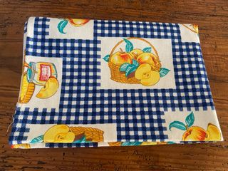 Pano de louça com um design vintage encantador, apresentando um padrão de maçãs e cestos. - Estampa de maçãs e cestos. - Padrão xadrez azul e branco. - Ideal para decoração de cozinha. - Novo Dimensões 65 X 48 Veja fotografias por favor