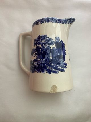 Jarro antigo da Sacavém com decoração azul. - Design com “Cavalinho” azul - precisa de restauro,veja circulo azul na fotografia por favor Entrego em mão a combinar na linha de Cascais