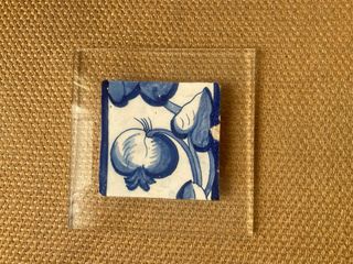 Este é um azulejo português do século XVII, ideal para decoração. - Design com motivos florais e frutíferos. - Pintura em azul e branco. - Peça de colecionador. As medidas estão nas fotografias A base para pendurar na parede é em acrilico. Veja os outros azulejos e fotografias por favor.
