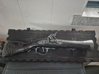 Linda pistola antiga, perfeita para decoração. Apresenta detalhes ornamentais e um design elegante. Funcional o mecânismo. Mais informações por contacto para o vídeo do funcionamento da arma de decoração.