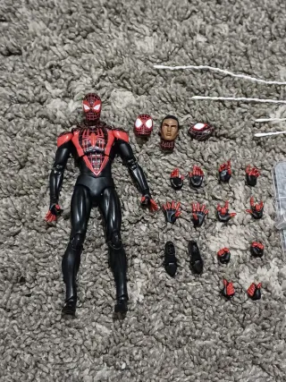 Figura de ação do Miles Morales, com detalhes inspirados no personagem. - Inclui boneco articulado. - Vários acessórios para mãos e rostos. - Base de suporte para exibição.