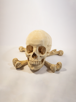 Conjunto de duas caveiras decorativas. - Material: Pla - Cor: Bege - Detalhes realistas