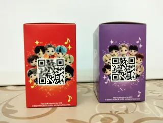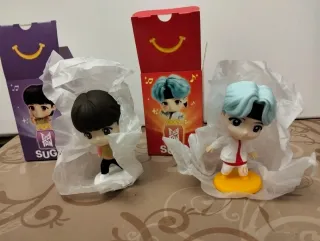 Coleção de bonecos TinyTAN, parte da colaboração com o McDonald's. Cada boneco vem com sua caixa. - Bonecos colecionáveis. - Embalagem temática do McDonald's.