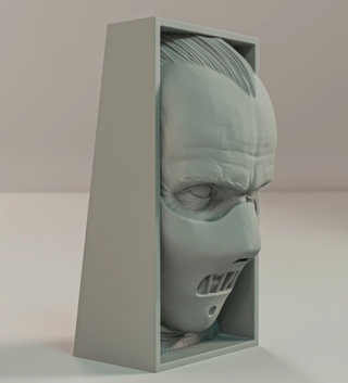 Peça decorativa em 3D inspirada em Hannibal Lecter, perfeita para fãs de cinema e literatura.