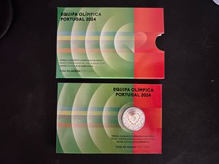 Moeda comemorativa 2€ PROOF da Equipa Olímpica de Portugal 2024. - Design especial comemorativo. - Acabamento PROOF. - Emissão de 2024. - Autor: Rita Margarida. - Casa da Moeda de Portugal.