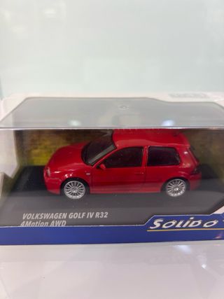 Miniatura do Volkswagen Golf IV R32 em vermelho, escala 1:43. - Detalhes fiéis ao modelo original. - Fabricado pela Solido.