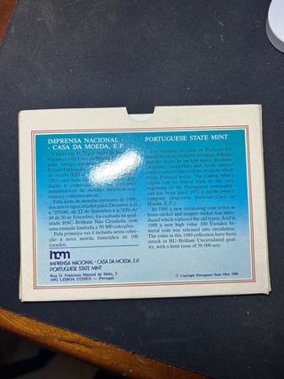 Coleção anual de moedas de Portugal de 1989, com acabamento Brilliant Uncirculated. - Inclui moedas comemorativas. - Apresenta o retrato de Pedro Nunes. - Emitido pela Imprensa Nacional - Casa da Moeda, E.P. (Portuguese State Mint).