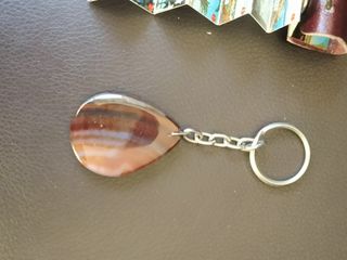 Porta-chaves com um adorável tigre e contas coloridas. - Detalhe de tigre em relevo. - Contas em tons de laranja e castanho. - Argola metálica para chaves.