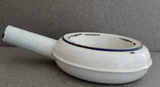 Arrastadeira antiga em esmalte. - Material: Metal esmaltado - Cor: Branco com detalhes em azul