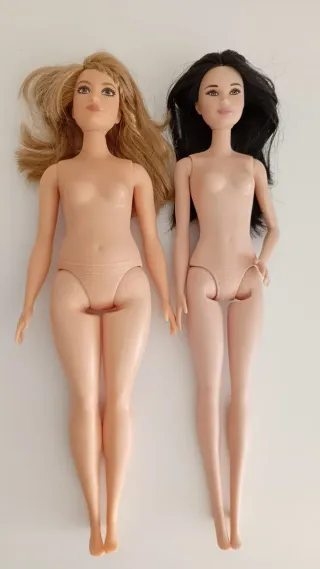 Lote de duas bonecas Barbie. - Boneca com cabelo preto. - Boneca com cabelo loiro e trança.