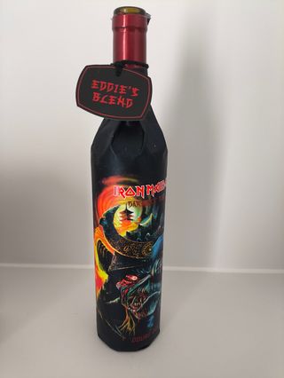 Garrafa de vinho, vazia, Iron Maiden. - Edição especial Eddie's Blend. - Design com arte de Eddie. - Tipo de vinho: Darkest Red. - Origem: Douro.