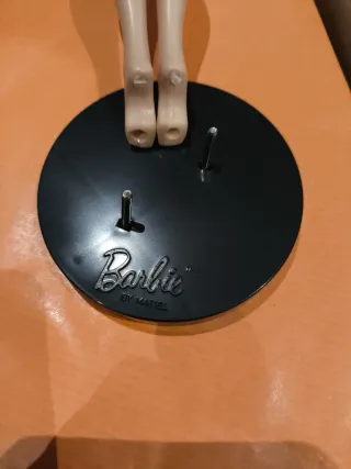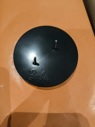 Suporte original da Mattel para bonecas Barbie. Peça clássica para expor sua coleção. - Design redondo e preto. - Possui dois pinos para fixar a boneca.