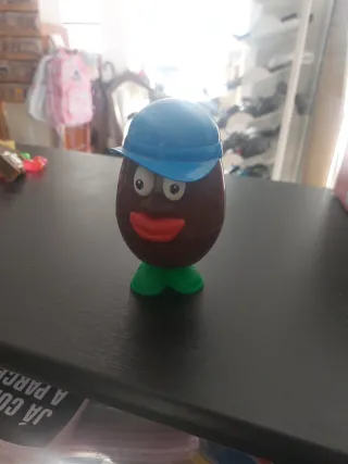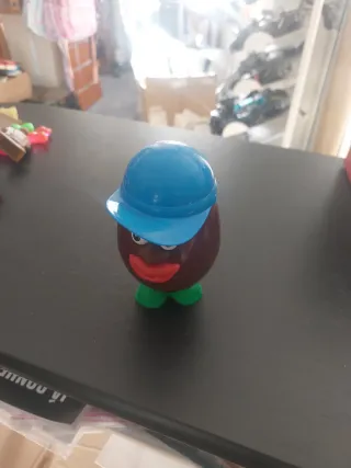 Boneco antigo Miko com um design divertido. - Chapéu azul. - Pés verdes. - Rosto com olhos e boca.