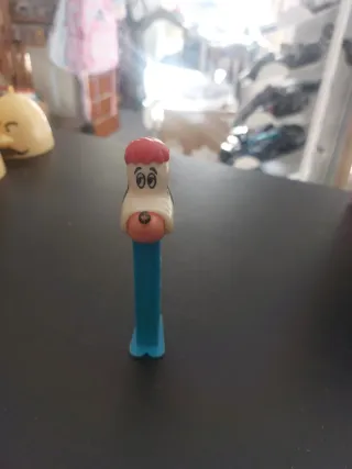 Colecionável Pez antigo com a figura de um cão com um chapéu vermelho. - Figura de cão com chapéu vermelho. - Corpo azul.