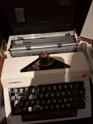 Máquina de escrever Olympia Monica em bom estado. - Design clássico e elegante. - Teclado completo com todas as teclas. - Inclui mala de transporte.